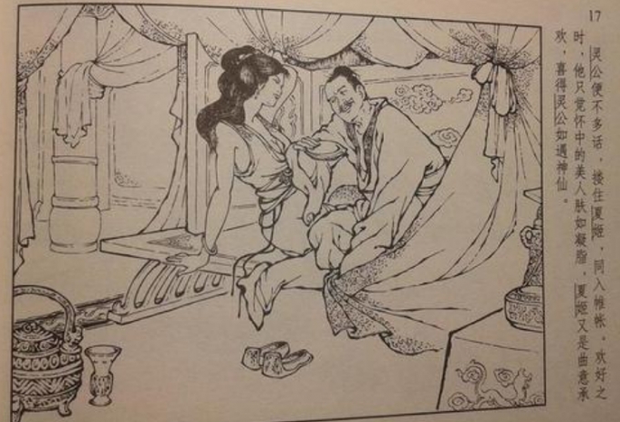 尽管四季交替、年复一年,夏姬的美貌没有丝毫的褪色。她守寡期间,与陈国大夫孔宁和仪行父同时通好,后来孔宁因为受到冷落,介绍了陈国国君陈灵公。这位陈灵公也是个荒诞不经之人,居然和两位臣子共享一女。