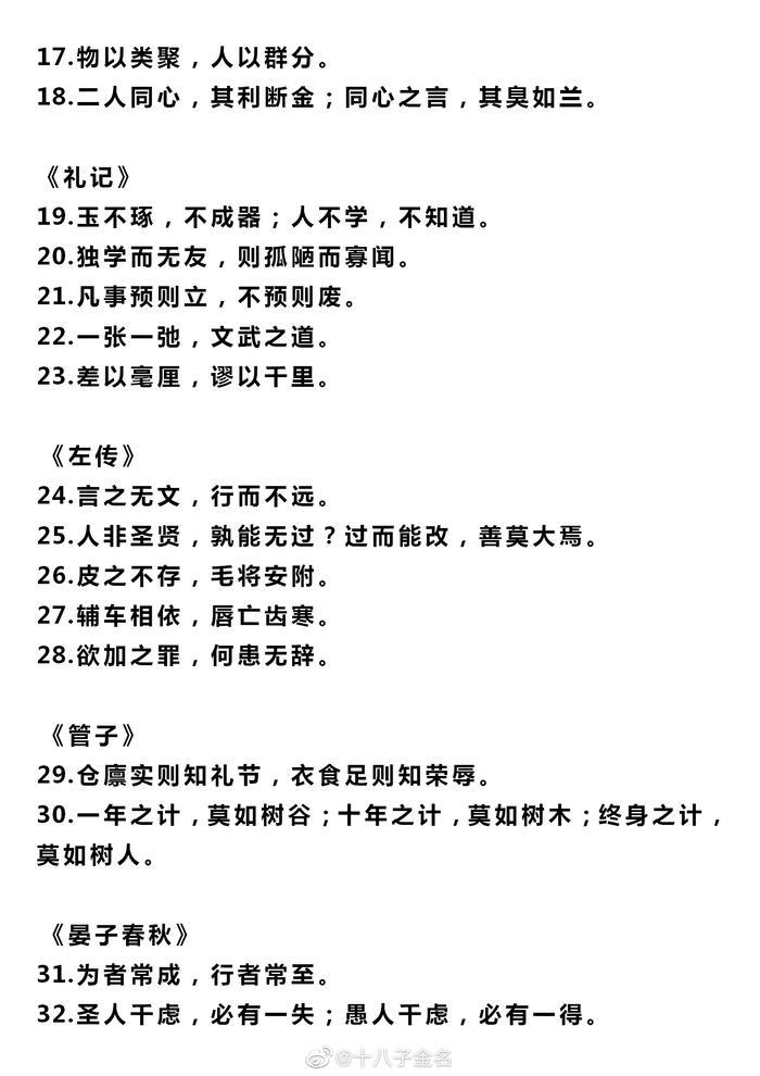 中国古代400句国学精粹名言,按朝代分类整理出来了,凝聚了中华传统文化的精髓,比如天作孽,犹可违,自作孽,不可活;祸兮,福之所倚,福兮,祸之所伏;家有孩子的,保存下来,为了提高孩子文化素养也要多看看,最好能够倒背如流,等到以后用到的时候,就能脱口而出了。#突然觉得读书真有用的瞬间#