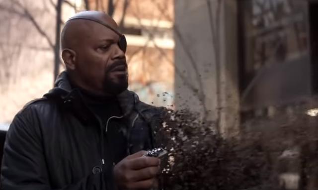 奥丁威胁已去,灭霸趁乱开始夺取无限宝石,先抢力量宝石,因为需要可以达到索尔的力量,然后魔方到手,利用空间宝石就更容易取得剩下的宝石,如灭霸所愿,终于完成了他的打响指大计,宇宙一半人口消失,尼克局长立马用BB机向惊奇队长求救,而惊奇队长表示会立马回到地球