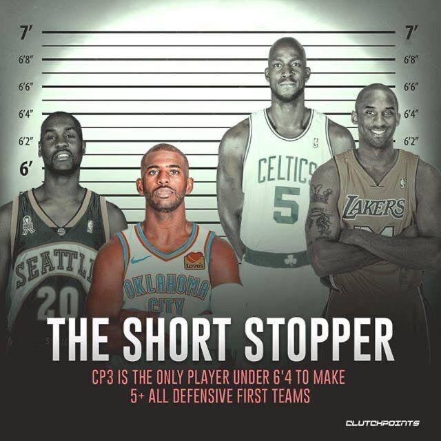 ClutchPoints更新一组数据:克里斯-保罗是唯一身高不足1米93,至少5次入选最佳阵容一队。