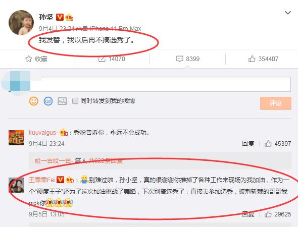 但是相比较于成团嘉宾,似乎王霏霏没能成团更让观众们心塞,就连为她特地来到现场的孙坚都发文“以后再也不搞选秀了”疑似不满。