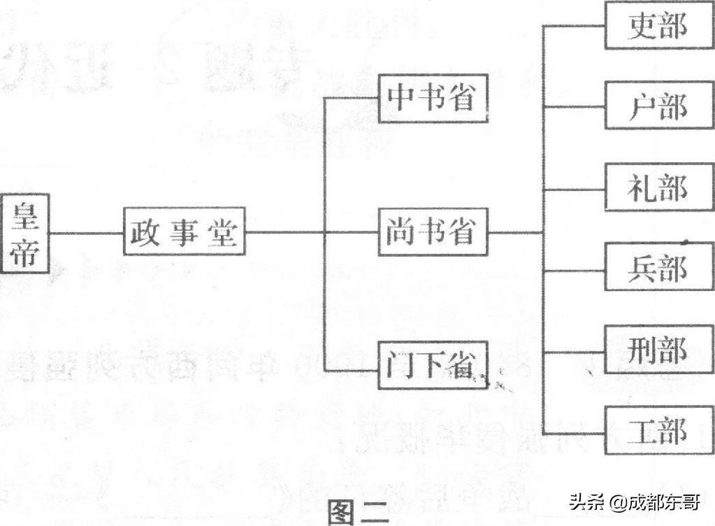 隋文帝即位后,废除北周附会《周礼》六官所建立的官制,代之以新的职官制度:“置三师、三公及尚书、门下、内史、秘书、内侍等省,御史台、太常、光禄、卫尉、宗正、太仆、大理、鸿胪、司农、太府、国子、将作等监,左右卫、左右武卫等府。” 以强化中央集权和恢复汉族王朝官制的传统。尚书、门下、内史三省制是隋代中央官制的核心。三师、三公虽然地位崇高位居一品但实际上只是荣誉。隋代尚书省的地位很高,《隋书·百官志》说“尚书省,事无不总”,反映了它作为最高国家行政机关的地位与权力。