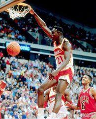 多米尼克·威尔金斯(Dominique Wilkins),1960年1月12日出生于法国巴黎,前美国篮球职业运动员,司职小前锋,身高2.03米,因花哨的扣篮动作而绰号“人类电影精华”(The Human Highlight Film)。主要奖项:9届NBA全明星阵容(1986-94);1986年NBA得分王、NBA最佳阵容一阵;4届NBA二阵(1987-88;1991;1993)、2届NBA三阵(1989;1994);2届NBA扣篮大赛冠军(1985;1990)