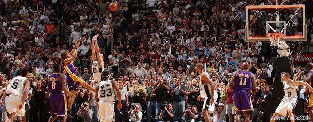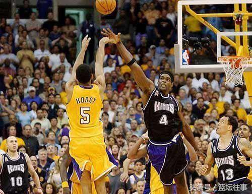 又是一幕经典,2002年的西部决赛第4场。最后时刻,湖人落后国王2分,如果输掉比赛,那么湖人大比分将会1-3落后国王。湖人发出球,科比来,没有!奥尼尔再来,还是没有!再最后一秒的时候。球掉到了外围的霍里手里,扬手一扔,压哨命中!然后霍里背着双手,跳着碎步接受全场欢呼。更为重要的是,霍里的这一球彻底击碎了那个时代的国王,最终系列赛湖人也还是笑到了最后。霍里也被后人成人幸运星,关键先生。