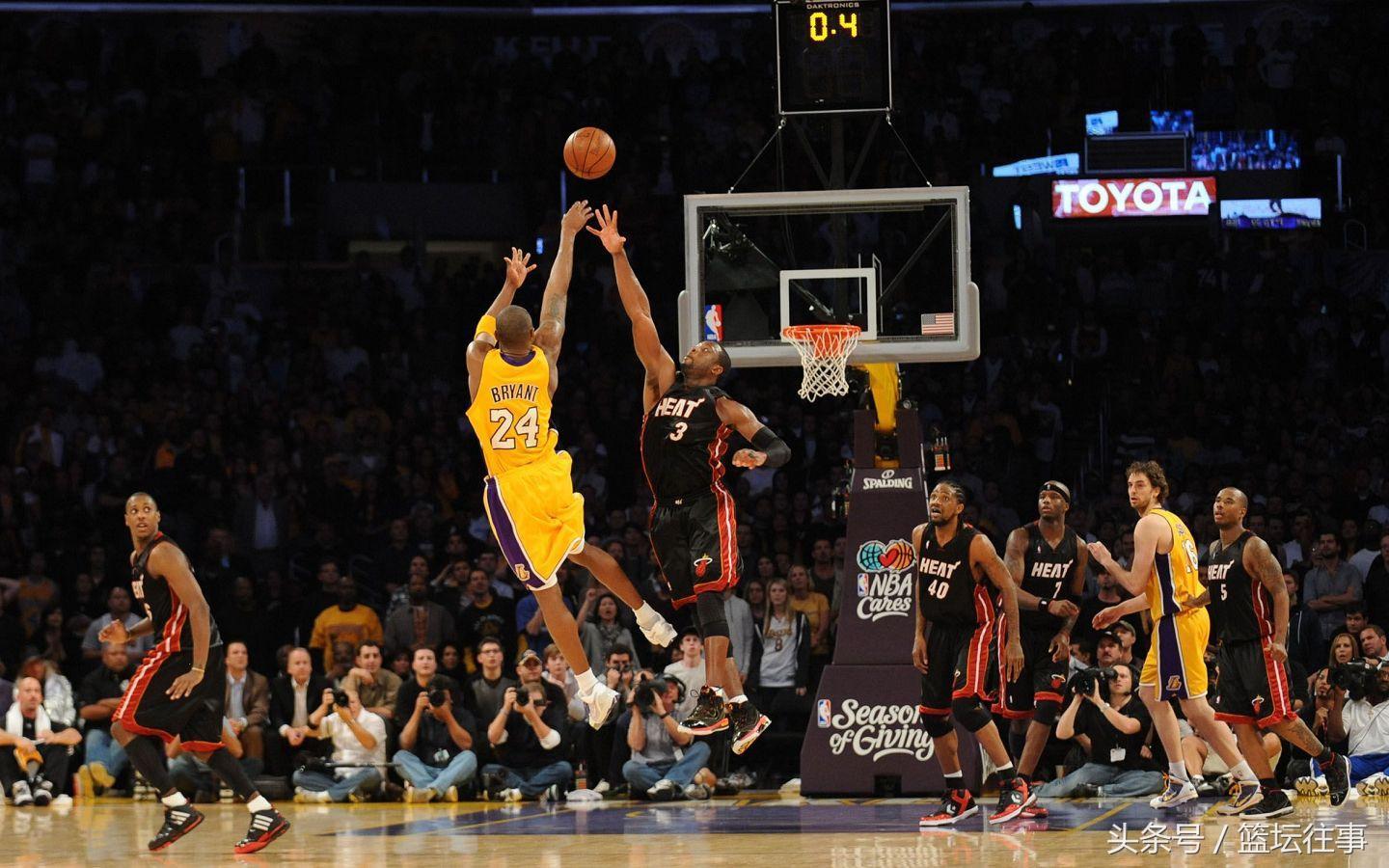 科比绝杀热火那个球,09年,应该很多球迷都有印象吧,毕竟这个世纪最伟大的两个得分后卫,面对韦德的贴身防守,科比从右侧艰难拿到球,左手运两下,拧着身子,在韦德贴身防守下,单脚起跳,扔出去的,能不能看着框都不知道,但是这球进了。