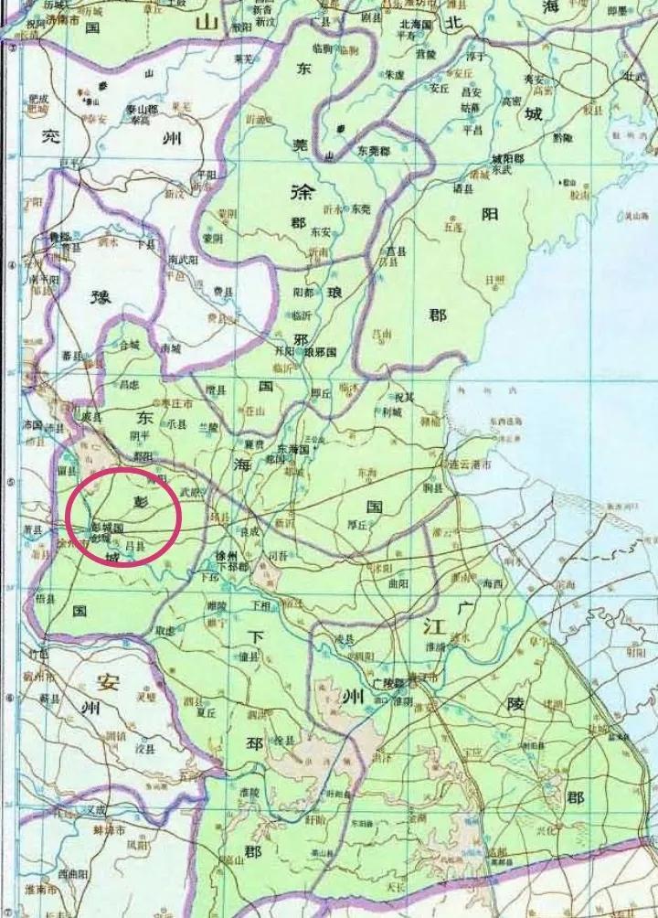 西汉在秦朝郡县制的基础上,设立十三州刺史部,作为监察区。东汉演变为郡之上的一级行政区。东汉徐州刺史部辖域包括琅琊国、东海郡、彭城国、下邳国、广陵郡。治所为东海郡郯县,即今山东临沂郯城县。如果以治所来代表的话,此时徐州在山东。