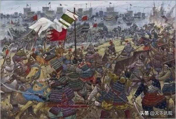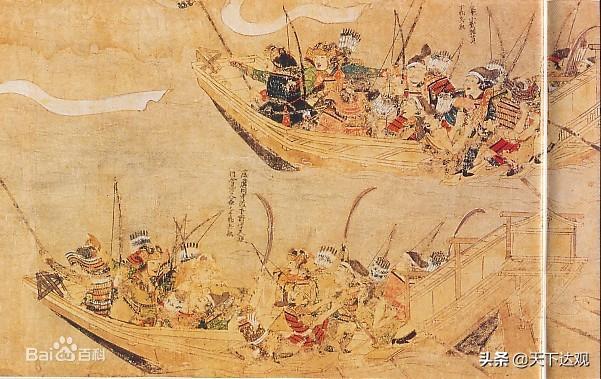 1281年蒙古大汗忽必烈派蒙古大将阿刺罕担任总司令(行省右丞相)、汉人大将范文虎担任副总司令(行省右丞),分南北两路,在对马岛上会师。