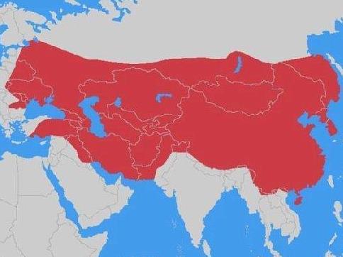 蒙古帝国形成于13世纪初,后成为横跨欧亚大陆的大帝国,为元朝与四大汗国的联合体。蒙古帝国1294年国土面积达3300万平方公里,一说2800万平方公里(北疆以北纬60度左右为界),占世界土地面积的22%,超越了五分之一,为20世纪时苏联的1.5倍,现今俄罗斯的1.9倍,涵盖了当时版图内的1亿人口,吉尼斯世界纪录等官方机构和国际史学界均承认蒙古帝国是仅次于大英帝国的人类史上第二大帝国。