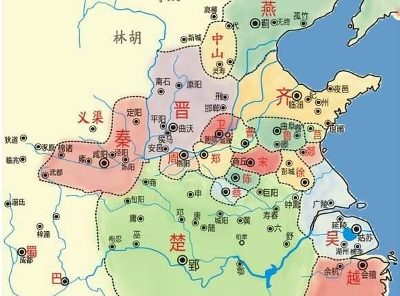 在这里面,晋、齐、鲁、宋和晋三分而成的韩、赵、魏三国都属于中原诸侯国,而楚国和秦国属于半个蛮夷。吴、越更是开化晚些。