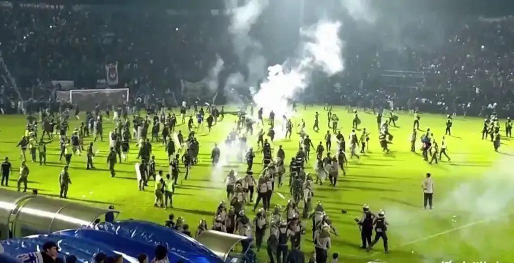 在韩国踩踏事故之前最近的一起踩踏事故发生在今年10月1日,在印尼东爪哇省玛琅市,坎朱鲁汉体育场举行的一场印尼足球联赛发生严重骚乱事件。这座极限容纳3万人的球场当时聚集了4万人在观看阿雷马队与佩尔赛巴亚队的比赛。在阿雷马队主场2-3输给对手后,数千米阿雷马队球迷翻越栏杆冲向球场与佩尔赛巴亚队球迷爆发激烈冲突,警察为维持现场秩序向人群发射了大量催泪瓦斯引发场内人群恐慌,人们纷纷向出口涌去却又因瓦斯刺激和烟雾弥漫而分不清道路,最终发生了踩踏事故造成132人死亡,580人受伤。