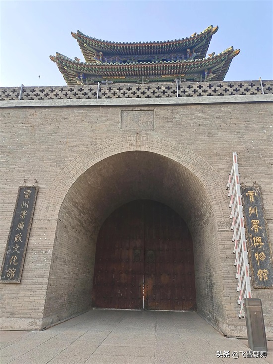 再往东就到了霍州署。霍州署典型南北中轴线,中国传统四方院 ,前面办公,后院居住。正门口临街,坊门高大,飞檐斗拱,古朴典雅,上题“古霍名郡”,下面还有“平理”、“保厘”四字,也就是说霍州署既审官断案,又负责税收。山西霍州署,是中国北京故宫、保定直隶总督署、河南内乡县衙四大名署之一,隋唐时兴建,距今1300年的历史。