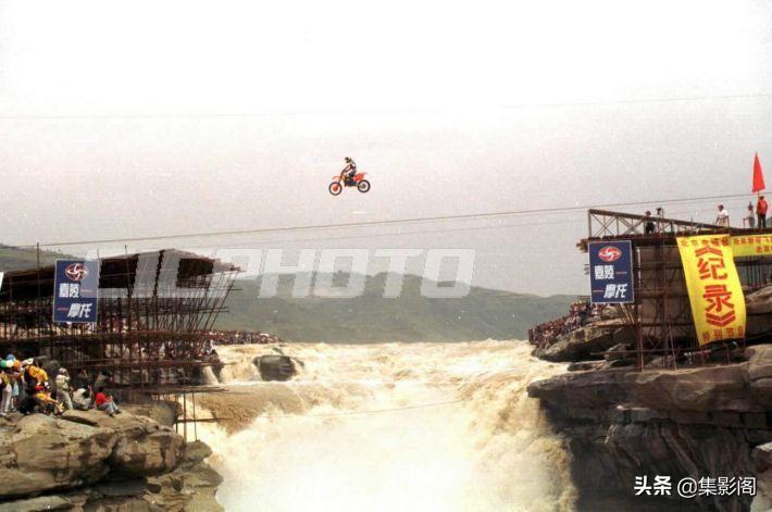 1999年6月20日11时50分朱朝辉驾驶摩托车成功飞越黄河壶口瀑布 姜华摄