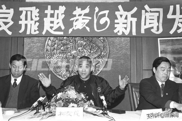 1996年3月19日,曾以飞越长城而闻名海内外的特技演员兼导演柯受良(中)在山西太原宣布,他将于今年10月5日,开车飞越宽50米的黄河壶口瀑布,同时,他还将为这里的贫困孩子上学募集资金。