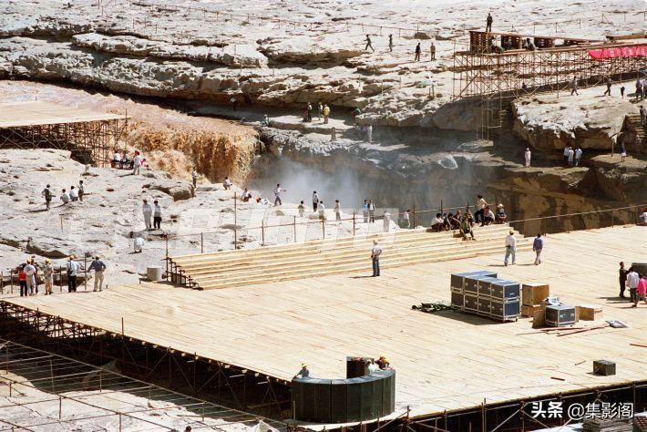 5月30日,陕西、山西两省为柯受良6月1日飞越黄河搭建的270米跑道已经铺设完毕,为一系列文艺活动准备的2400平方米大型舞台也基本完工。图为架设在壶口瀑布上的飞越台和舞台。