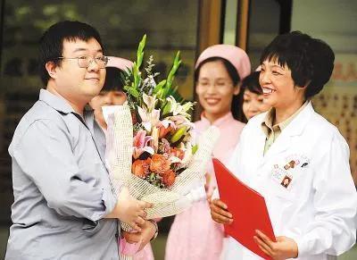 2009年5月17日,我国内地首例甲型H1N1流感(又名猪流感)患者包某某和女友,父亲与医务工作者合影留念。当日,经过卫生部、四川省、成都市的医疗专家组科学有效和精心细致的治疗,我国内地首例甲型H1N1流感患者包某某治愈出院。