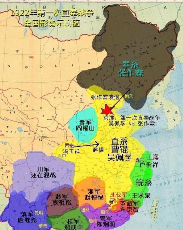 第一次直奉战争爆发,奉系张作霖直系吴佩孚爆发战争。