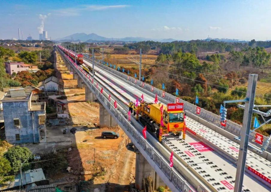 广州日报全媒体记者今日从河源市政府获悉,赣(州)深(圳)高铁汕湛高速特大桥已于2月1日开始将一组500米的长轨铺入无砟轨道板上,这标志着赣深高铁广东段正式开始铺轨,而河源也即将告别境内无高铁的历史。