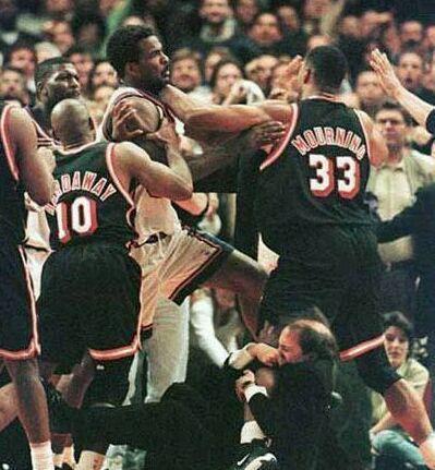 1994年5月,公牛队的乔·英格利希和尼克斯队的德里克·哈伯在季后赛中的斗殴从激烈程度来说只是“还可以”,但这一次的打斗却是NBA打架史上具有里程碑意义的一幕。
