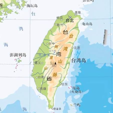 中国的台湾省(包括台湾岛和澎湖列岛和龟山岛、绿岛、兰屿、钓鱼岛等),面积36000.06平方公里(其中台湾岛面积35808.38平方公里),人口两千多万。