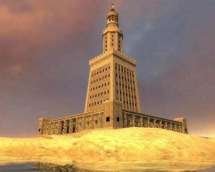 建于公元前3世纪,埃及亚历山大灯塔是世界上的第一座灯塔;灯塔在黑夜中发放耀眼的光芒,照耀整个亚历山卓港,保护着海上的船只,是当时世上最高的建筑物。