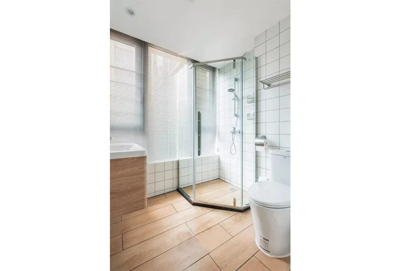 主卫,利用转角的空间做钻石型淋浴房,提升空间的使用率,还显得更时尚。