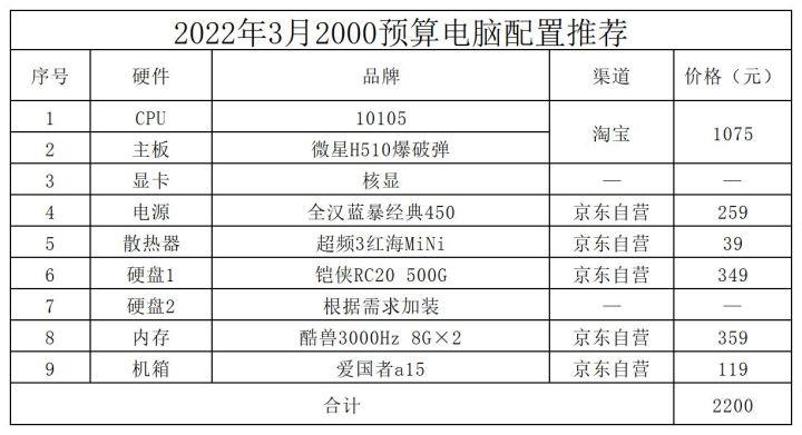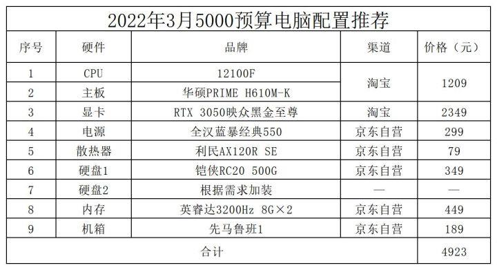 ps:如果预算不够,可以先满足处理器和显卡的需要,后续再考虑将机械换成固态