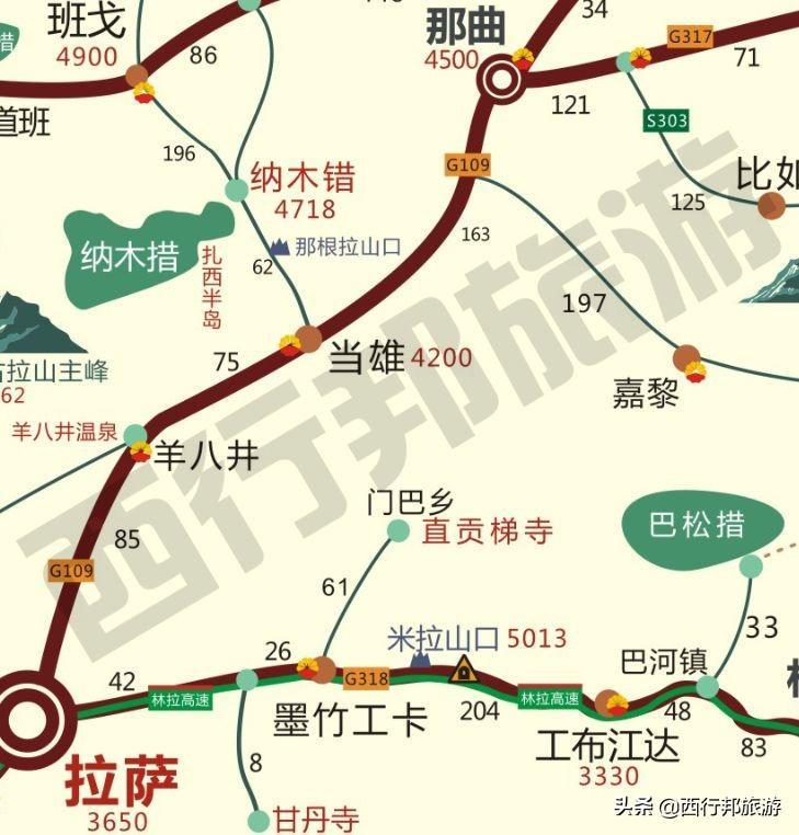 交通:拉萨至那曲路段存在多处区间测速路段,多数路段限速为70km/h,车主须按照路边指示牌的提示行驶。