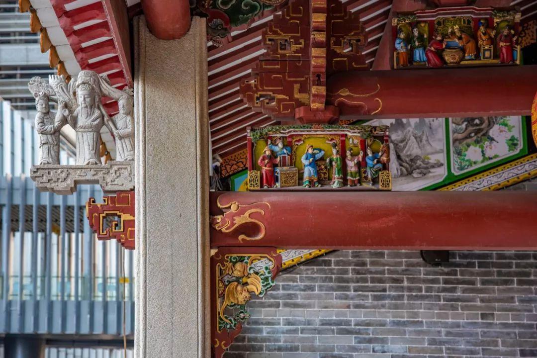 改造完成后,大王古庙和郑氏宗祠两个历史建筑重修,这才有了我们现在看到的这种“突兀”的存在。