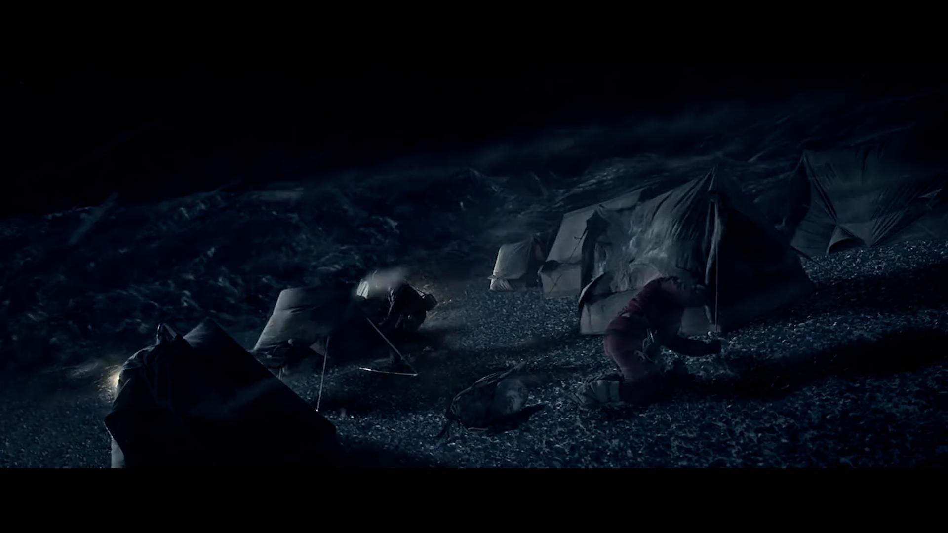 此时,登山队员们也只能在山上过夜,然而,这一夜,却变得异常的冷,登山队员们只能打起精神互相取暖。