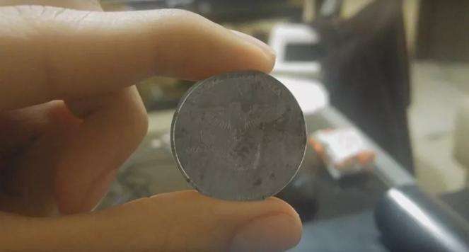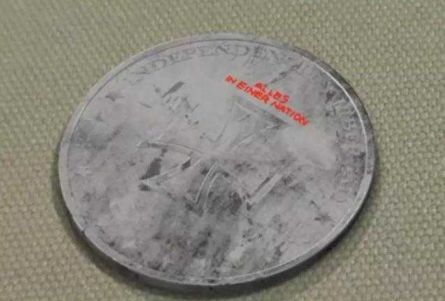 西班牙考古学家德·瓦伦西接过硬币小心辨别后创造,在硬币的部分印着纳粹党的标记标记图案“卍”字鹰以及一个单词汇:NuevaAlemania,而这个单词汇的道理是德文'新德国'的道理。在硬币的另部分印着纳粹的另一个标记图案“十”字,并印着一行小字Alies in einer nation”,这行小字的德文道理是“十足国度都在一个国度之中”。这件事格外怪僻,考古学家随即将这枚硬币干了录像,并搁到了网上。