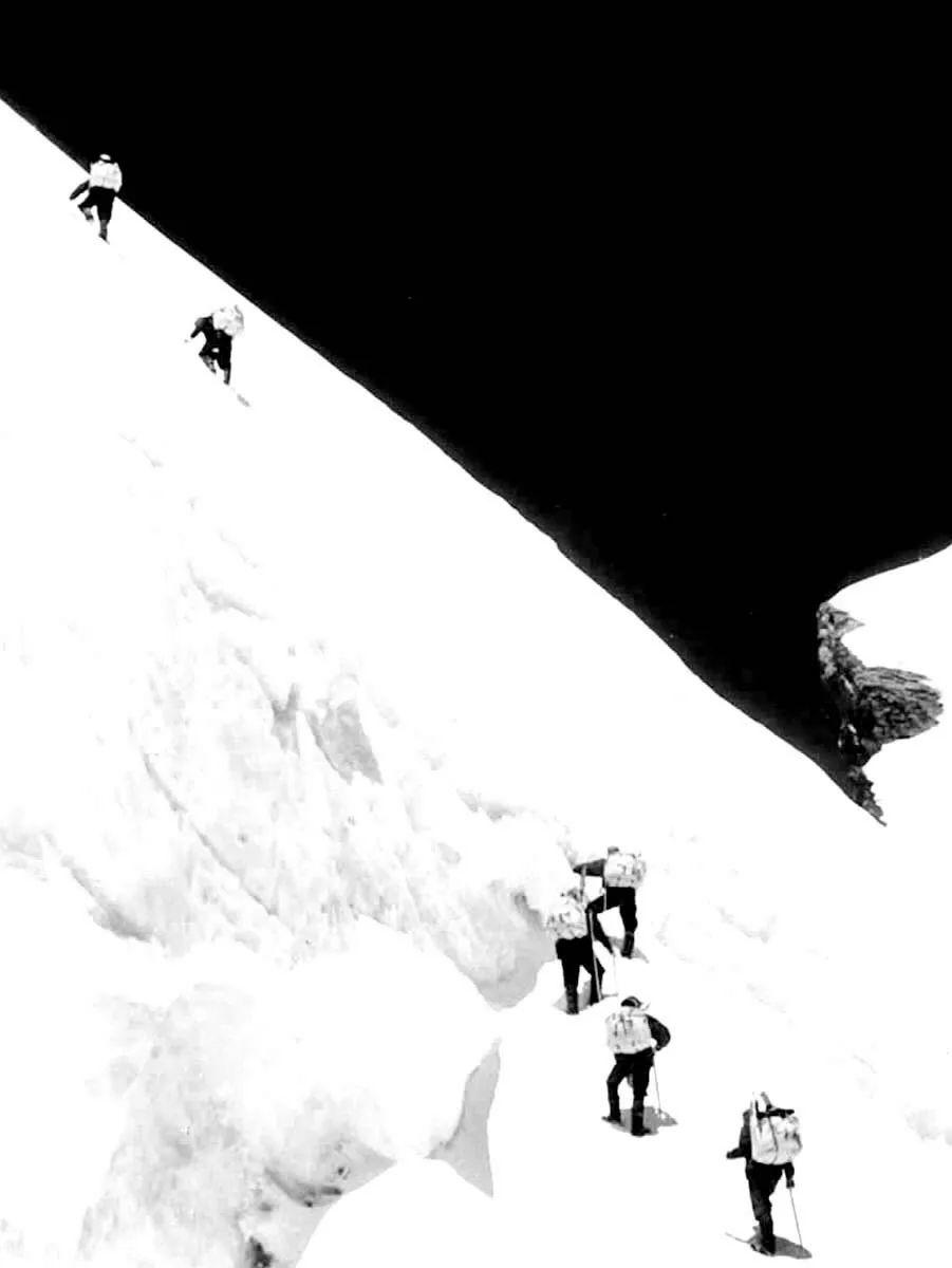 中国爬山队员向珠穆朗玛峰顶峰进发。1960年5月25日北京时候4时20分,中国爬山队成功登上8848米的珠穆朗玛峰,完毕了人类履历上第一次从北坡登上世界第一顶峰的豪举。新华社稿 刘大义、屈银华摄