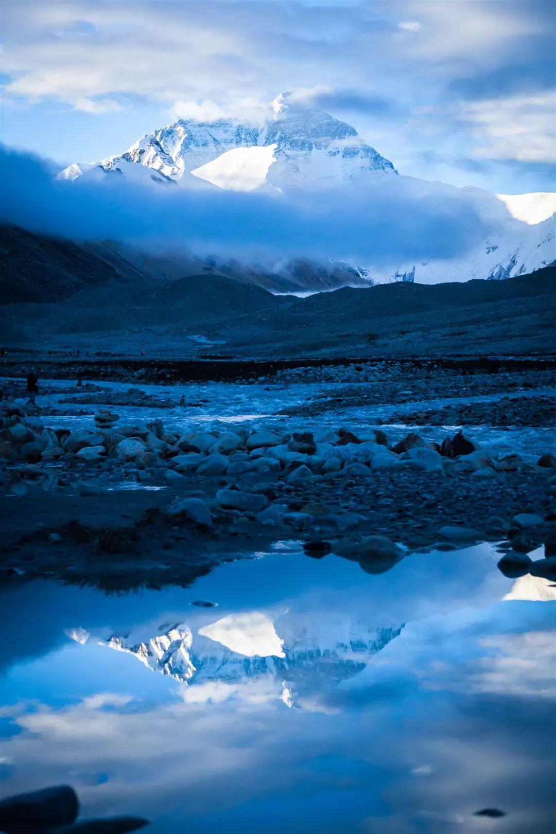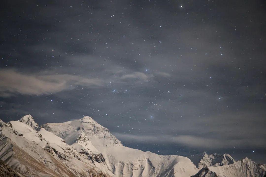 晚上的珠峰,浮云间繁星点点(5月1日摄)新华社记者 孙非 摄
