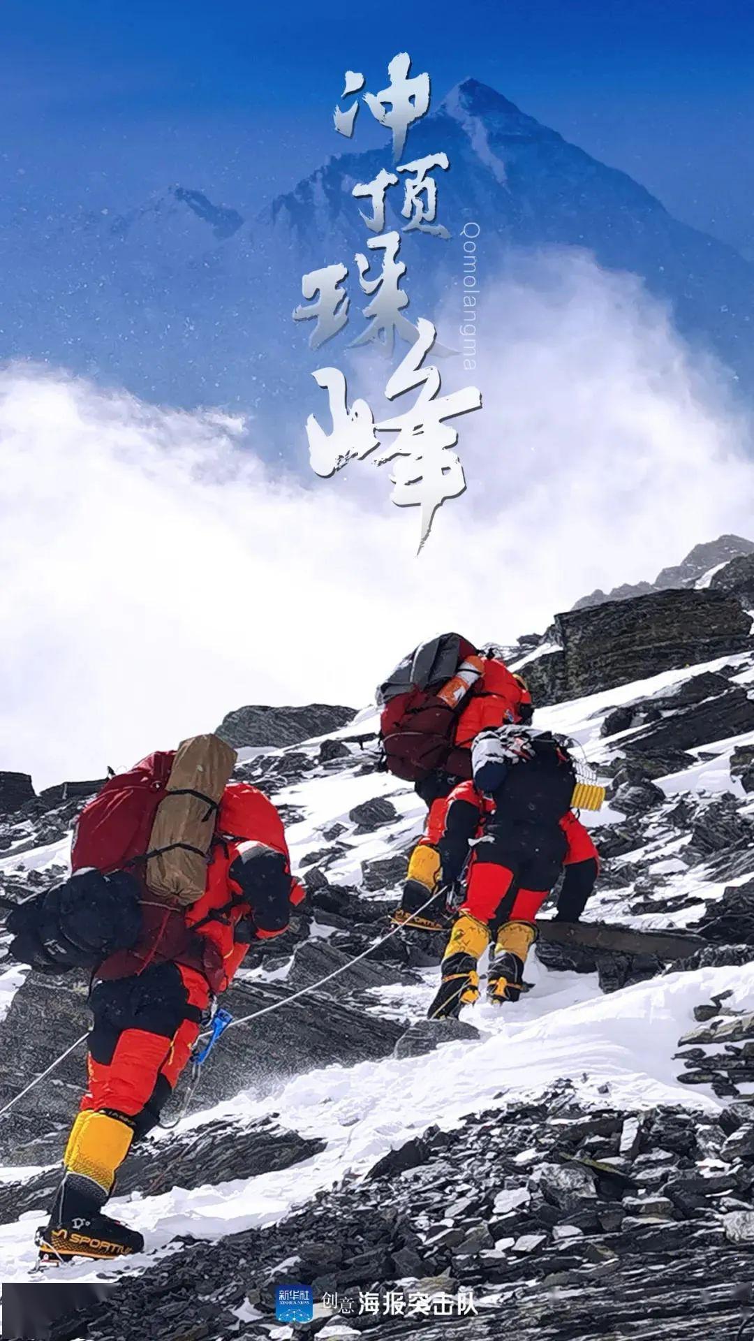 2020珠峰高程丈量爬山队胜利登顶世界第一顶峰珠穆朗玛峰
