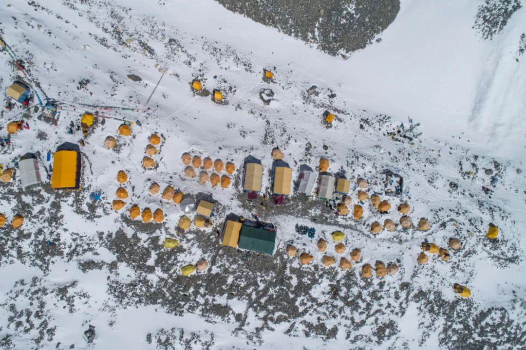 这是海拔6500米的珠峰进步营地(5月10日摄,无人机照片)新华社记者 孙非 摄