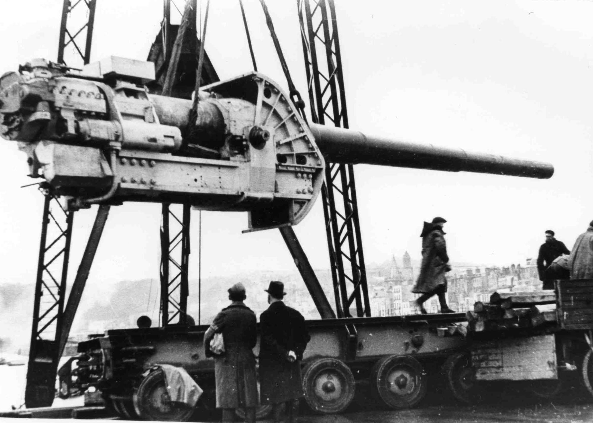 最后1艘装载火炮的轮船“尼努”号在1940年2月26日离开比塞大。4月9日该船在挪威卑尔根被登陆的德军俘获,随后送到德国。在芬兰当局的同意下,或者在没有征得许可的情况下,火炮被卸下并送到克虏伯工厂,准备改装为海岸炮。之后1941年11月9日,德军将这4门海岸炮部署在海峡群岛的根西岛,并将海岸炮兵连命名为 “米鲁斯”(Mirus)公司”。火炮布置在圣彼得港附近山上,每门火炮相距很远,都用茅草屋顶的农舍加以伪装。每门火炮都是一个独立作战单位,有良好的通风和中央供暖设施、地下弹药库、卫生系统、照明系统、储备柴油发电机组等。 火炮有很大的仰角,正常的射程为28千米,最大射程达到30千米。除了训练和试射外,火炮从未向敌方目标进行过射击。战争结束后,这些火炮被英国拆除。