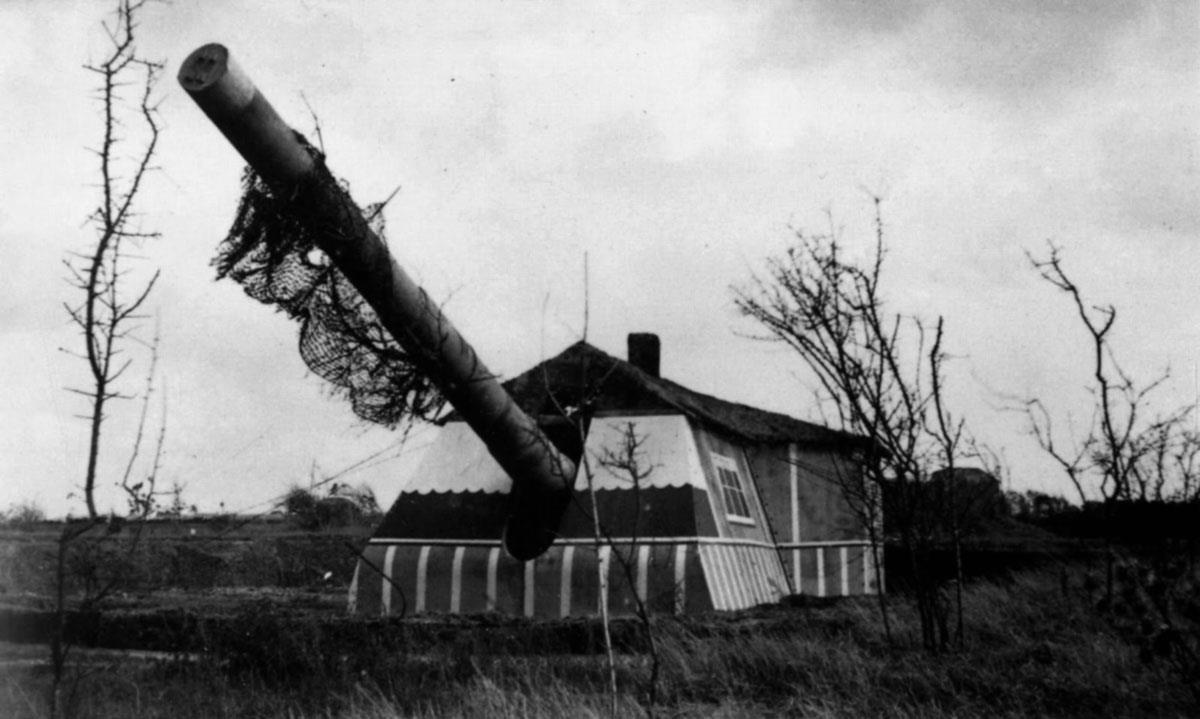 ▲德军1门伪装成公寓的305毫米海岸炮
