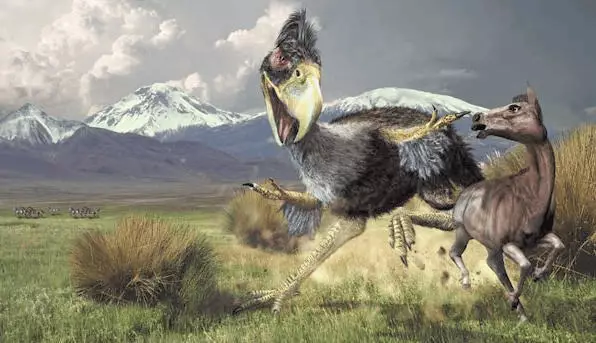 3、骇鸟、又被称为恐惧鸟、是一类宏大的肉食性鸟类,也是少量不会遨游的鸟类。它们存在留6200万-200万年前鼎盛代的南美洲。现时最亲近它们的心腹是鹤科。是茕居型动物,天敌是狼群,它们约有1-3米高。骇鸟的腿骨脆硬、肌肉健康,不妨实脚打碎平淡巨细猎物的骨骼,而后渐渐地吸食猎物骨骼中富含养分的骨髓。固然不会遨游、然而是它们的奔走速度相称快,据科学家估量,这种巨型鸟类跑速可达每小时97公里,比猎豹还快。其祖宗疑似是霸王龙、因此对于情况的符合性差、这也是它们毁灭的缘故之一、共时它们的毁灭大概与狼群有闭。
