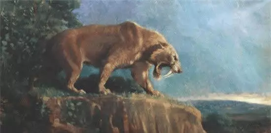 5、刃齿虎别名美洲剑齿虎、大概存在留距今3百万至1万年前的北美洲和南美洲。其平衡长度可达到3.7米、体沉约300~400公斤,体型如狮子,其犬齿格外兴盛,可达17厘米。和骇鸟普遍是茕居型动物,天敌是狼群。
