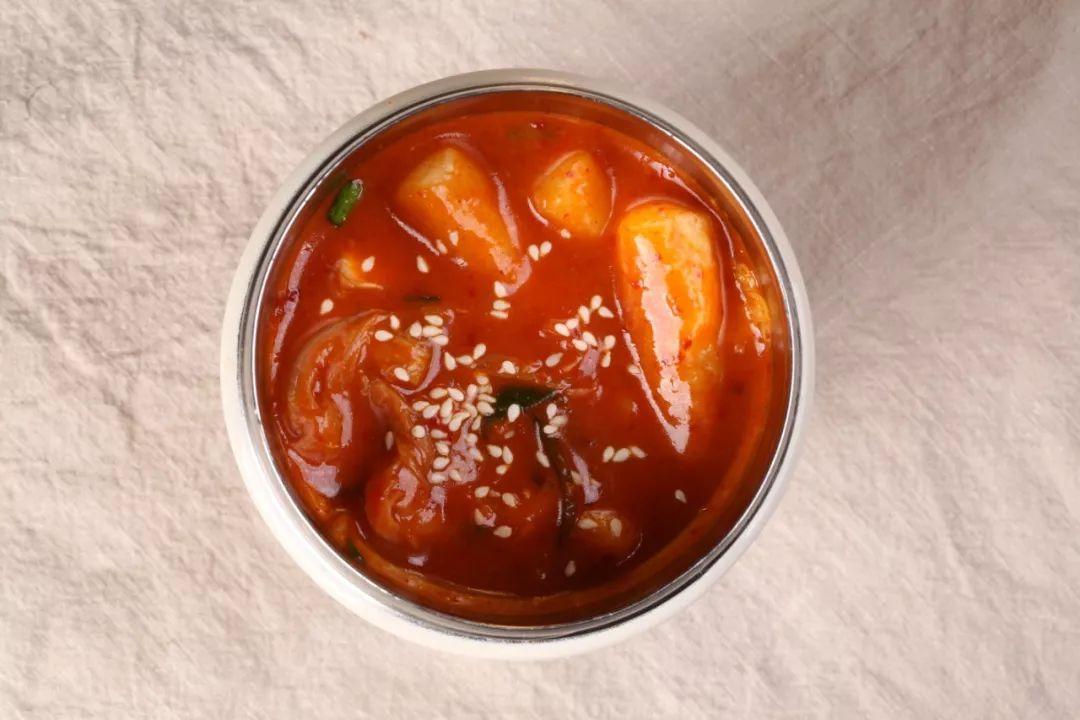 ④将年糕连同酱汁一起盛到焖烧杯里,焖 1 个小时即可。
