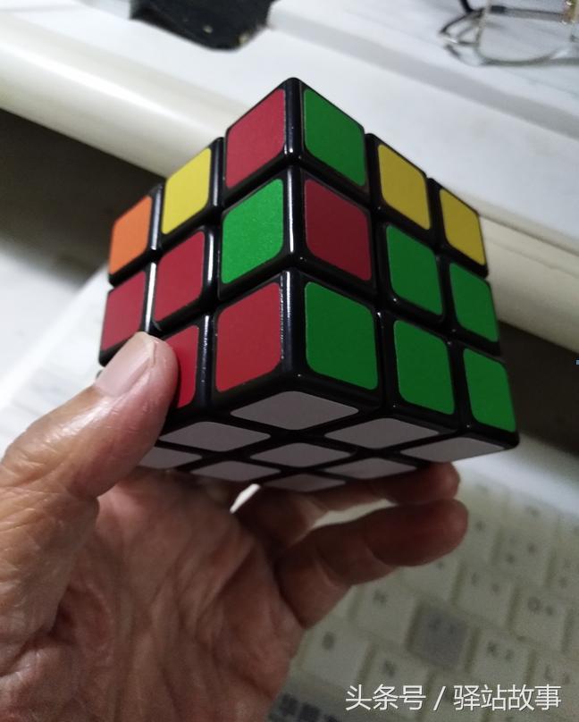 最后,做到顶层时,也遇到些类似的卡壳,解决也都离不开公式,更离不开机智灵活。老人自信的说,“不管学什么,不排除死记硬背,但死记硬背不等于放弃灵活去死磕。”就在第三天的晚上,老人试验着操作着,非常高兴,第一次成功的还原出了三阶魔方!当然是看一步转一下,速度非常慢。大约用了半个月的时间,他初步丢掉了纸上的“教材”, 但还是做做想想,仍然很慢。
