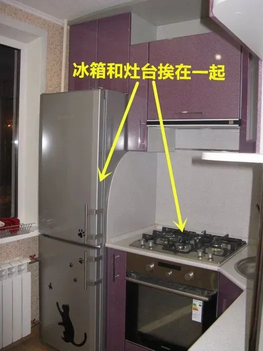 就算家里再小,冰箱也不要跟燃气灶挨着放在一起!冰箱一定要远离灶台、煤气和高热量的地方。
