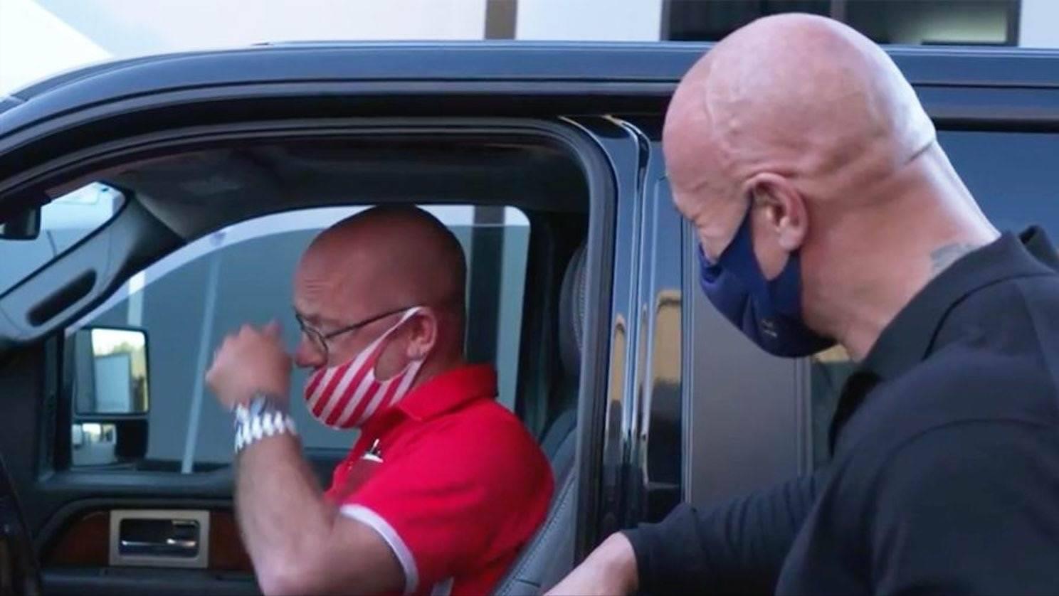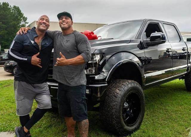 首先是送车,强森酷爱通过送车来表达自己的善意,称得上送车狂魔。其中最知名的就是他送给自己的御用替身Tanoai reed的那辆价值不菲的定制福特F-150皮卡,用来感谢替身演员多年的艰辛付出。