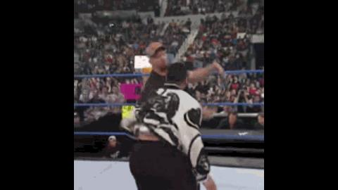 事实证明,强森准确把握了摔迷的心理。此次转型取得了空前的效果,魔性的挑眉和浮夸的动作很快成为巨石强森的专属风格,搭配上巨石出色的口才,他很快成为观众最喜欢的摔角手。上几张强森的受招图感受一下强森独有的浮夸风格,他在被对手打中时甚至能够倒地再弹起来转几圈,不愧是弹簧人杰森。