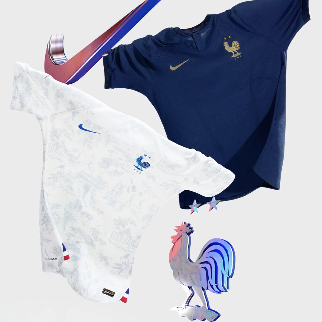 法国足球俱乐部的标志是“高卢雄鸡”,从1894年开始,经过了数次易手,但从2014年到现在2022年,“雄鸡”的外形并没有太大的变化。在1998和2018年间,这两个明星都是为本届世界杯赢得了冠军。尽管他们没能让自己的球队走得更远,但他们还是在本届世界杯上留下了闪亮的瞬间。今年的法国队服是 Nike的,深蓝色的主场队服上装饰着橡树和橄榄枝,看起来充满了活力,充满了运动气息。象征着力量、团结和和平;客队队服上有公鸡,凯旋门等图案。
