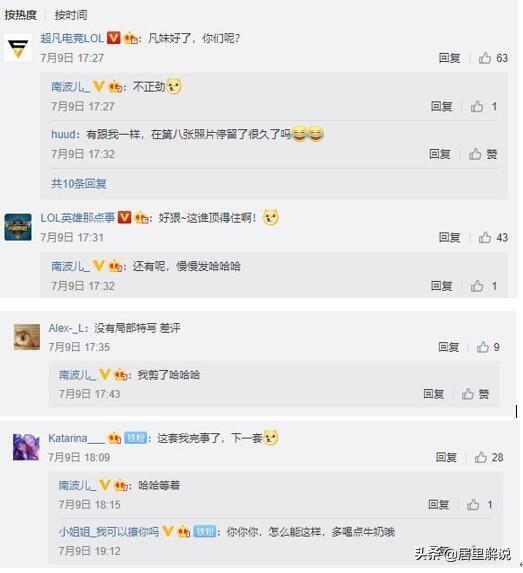 不过在评论区中却成了开车现场,许多电竞大佬也是纷纷来到南波儿这开始了老司机模式,凡妹好了,你萌呢?LOL的大V也是直呼这谁顶得住啊,有趣的是有位水友直言没有局部特写,但是就是不知道这位水友说的是哪方面的。