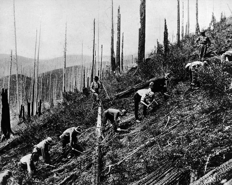 新政:平民保护团,平民保护团中的人清除了山坡,作为1930年代重新造林项目的一部分。