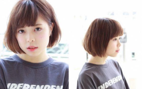 浅棕色染发的这款短发烫发十分显清新与甜美气质,搭配一九分的刘海,既显女生可爱又起到修颜效果,将左边的头发撩至耳后的小动作,能够轻松的展现出可人的小脸。