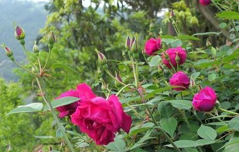 月月红是灌木月季,也可以做小藤本,高度可以长的非常高,可达5米!它的颜色为深枚红色或呈紫色,是一种非常漂亮的色彩。它的花瓣始终,花型紧凑漂亮!跟我特别钟爱的月季小饼干有近亲关系,只不过小饼干的花瓣更多,花苞更为紧凑,不易散瓣~