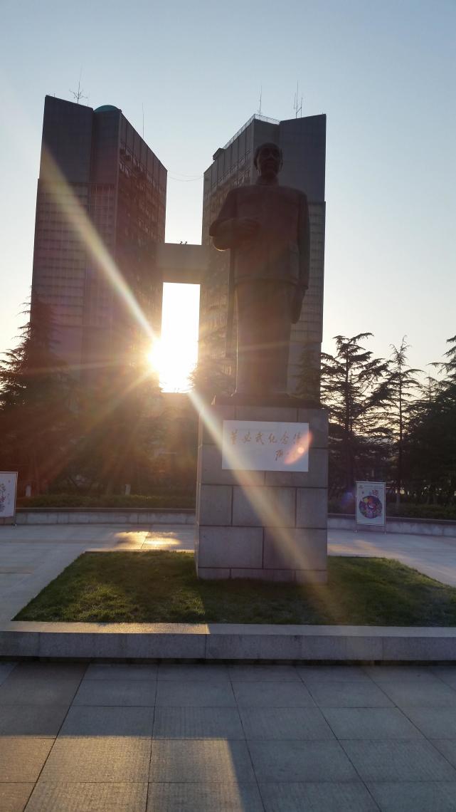 中心广场自东向西分为三大景区,董必武纪念广场,105株雪松苍翠挺拔环绕董老铜像,弧形景墙与四周雕栏围护,庄重宁静。