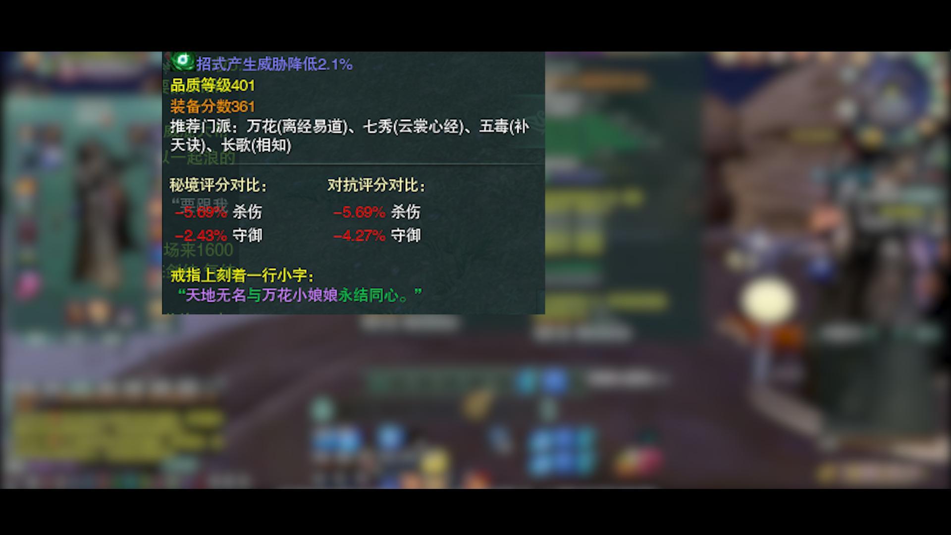 他有一枚戒指刻着“天地无名和万花小娘娘永结同心”。
